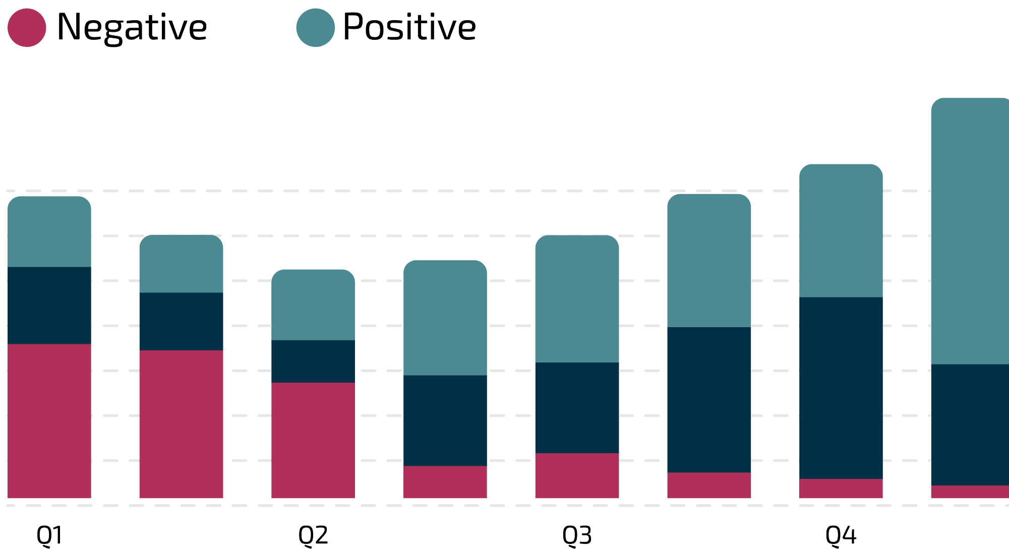 Spot trends and track sentiments over time by team, individual, or the entire organization.